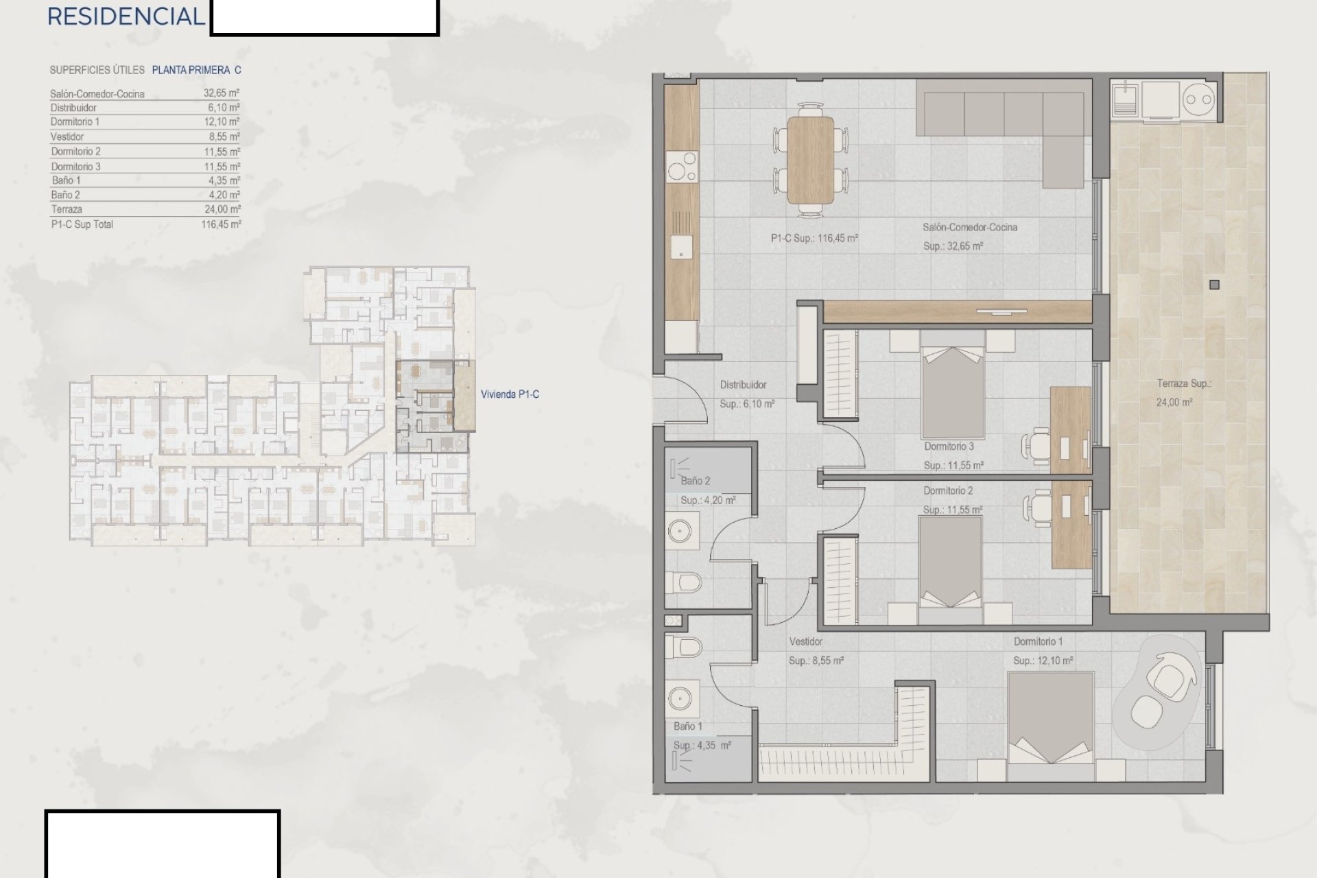 A Torre-Pacheco-i lakópark kültéri területei úgy lettek kialakítva, hogy maximálisan kihasználják a mediterrán éghajlatot. Minden ingatlan rendelkezik terasszal, amely ideális a szabadtéri pihenéshez és a környezet látványának élvezetéhez. Ezenkívül a tetőtéri lakások napozóterasszal rendelkeznek, amely további helyet biztosít a szabadidő és a pihenés számára. A közösség garázshoz való hozzáférést is kínál, biztosítva a lakók járműveinek kényelmét és biztonságát. A repülőtér közelsége, mindössze 25 km-re, jelentős értéket ad azok számára, akik gyakran utaznak.