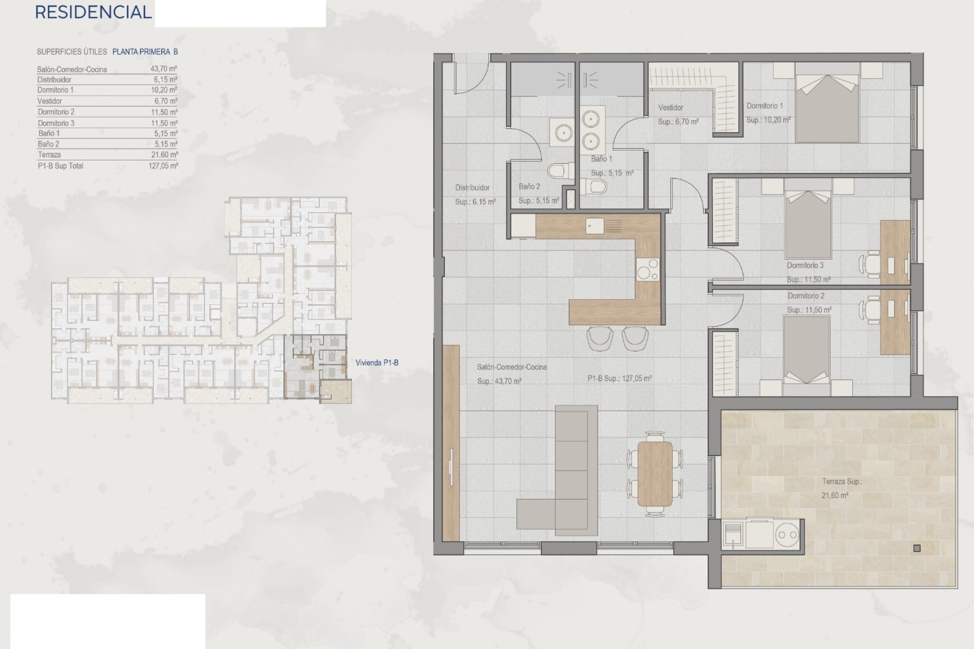 Az apartmanok belső tere úgy lett kialakítva, hogy kényelmes és funkcionális környezetet biztosítson. Az apartmanok és tetőtéri lakások modern háztartási gépekkel vannak felszerelve, megkönnyítve a mindennapi feladatokat. A kerámia padlók elegáns megjelenést kölcsönöznek, és könnyen karbantarthatók. A beépített szekrények optimalizálják a tárolóhelyet, fenntartva a rendet és az esztétikát. Ezenkívül néhány ingatlan pezsgőfürdővel rendelkezik, amely luxust és pihenést ad az otthonnak. Az elrendezés 2 vagy 3 hálószobát és 2 fürdőszobát tartalmaz, különböző családi igényekhez igazodva.