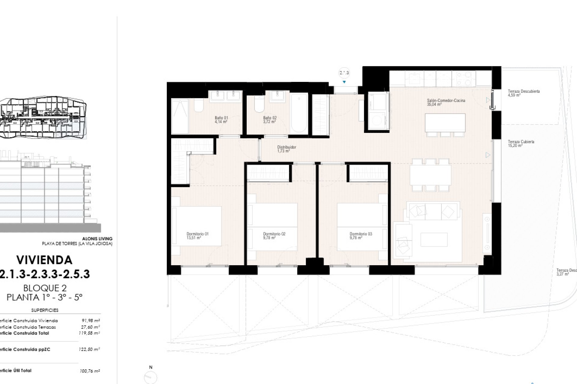 A bájos La Vila Joiosa városában található ez a lakópark, amely különféle lakhatási lehetőségeket kínál, amelyek különböző igényekhez és életstílusokhoz igazodnak. Összesen 71 egységgel a jövőbeli lakók választhatnak apartmanok, földszinti és tetőtéri lakások közül, amelyek mindegyike a kényelem és a funkcionalitás maximalizálására lett tervezve. A tenger közelsége, mindössze 400 méterre, lehetővé teszi a tengeri szellő és a lenyűgöző kilátás élvezetét, ideális menedéket nyújtva azoknak, akik nyugodt és természetes környezetet keresnek. A tipológiák sokfélesége biztosítja, hogy minden család vagy egyén számára megfelelő lehetőség álljon rendelkezésre, egytől három szobáig és egy vagy két fürdőszobával, a választás szerint.