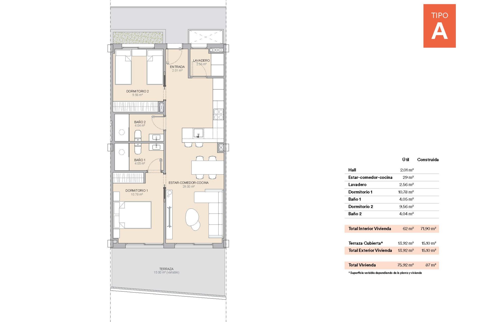 Az ingatlanok belső tereit úgy tervezték, hogy maximális kényelmet és funkcionalitást nyújtsanak. A porcelán gres padlók eleganciát kölcsönöznek, és könnyen karbantarthatók. Minden lakás légkondicionálóval van felszerelve, biztosítva a kellemes légkört egész évben. A modern háztartási gépek megkönnyítik a mindennapi életet, míg a beépített szekrények hatékony és rendezett tárolást biztosítanak. Az ingatlanok elrendezése a tér optimalizálására lett tervezve, tágas nappalikkal, amelyek tökéletesen integrálódnak a teraszokkal, folyamatos átmenetet teremtve a belső és külső terek között.