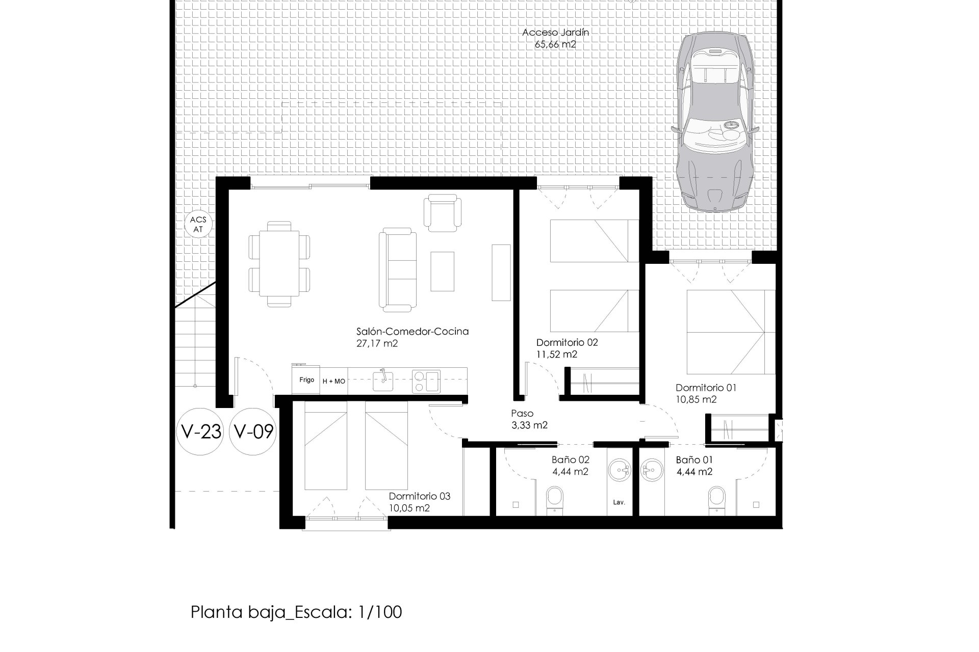 Położony w urokliwym miasteczku Pilar de la Horadada, ten kompleks mieszkalny oferuje wybór 28 bungalowów zaprojektowanych, aby spełniać potrzeby tych, którzy szukają wygodnego i funkcjonalnego domu. Lokalizacja jest idealna dla tych, którzy pragną cieszyć się spokojem śródziemnomorskiego wybrzeża, będąc zaledwie 4 km od morza. Dodatkowo, dostęp do lotniska jest wygodny, w odległości 46 km, co ułatwia międzynarodowe podróże. Oferta obejmuje dwa typy bungalowów: high-bungalow i low-bungalow, z których każdy ma unikalne cechy dostosowane do różnych stylów życia. Bungalowy zostały zaprojektowane, aby maksymalizować komfort i funkcjonalność, oferując dobrze rozplanowane przestrzenie i wysokiej jakości wykończenia. Preinstalacja klimatyzacji zapewnia przyjemne środowisko przez cały rok, podczas gdy wbudowane szafy oferują efektywne przechowywanie. Wybór materiałów, takich jak gres porcelanowy na podłogi, odzwierciedla zaangażowanie w trwałość i estetykę, gwarantując nowoczesne i łatwe w utrzymaniu wykończenie. Ten kompleks mieszkalny jest idealną opcją dla rodzin i par, które szukają spokojnego i dobrze skomunikowanego środowiska, z wszystkimi niezbędnymi udogodnieniami do komfortowego życia.