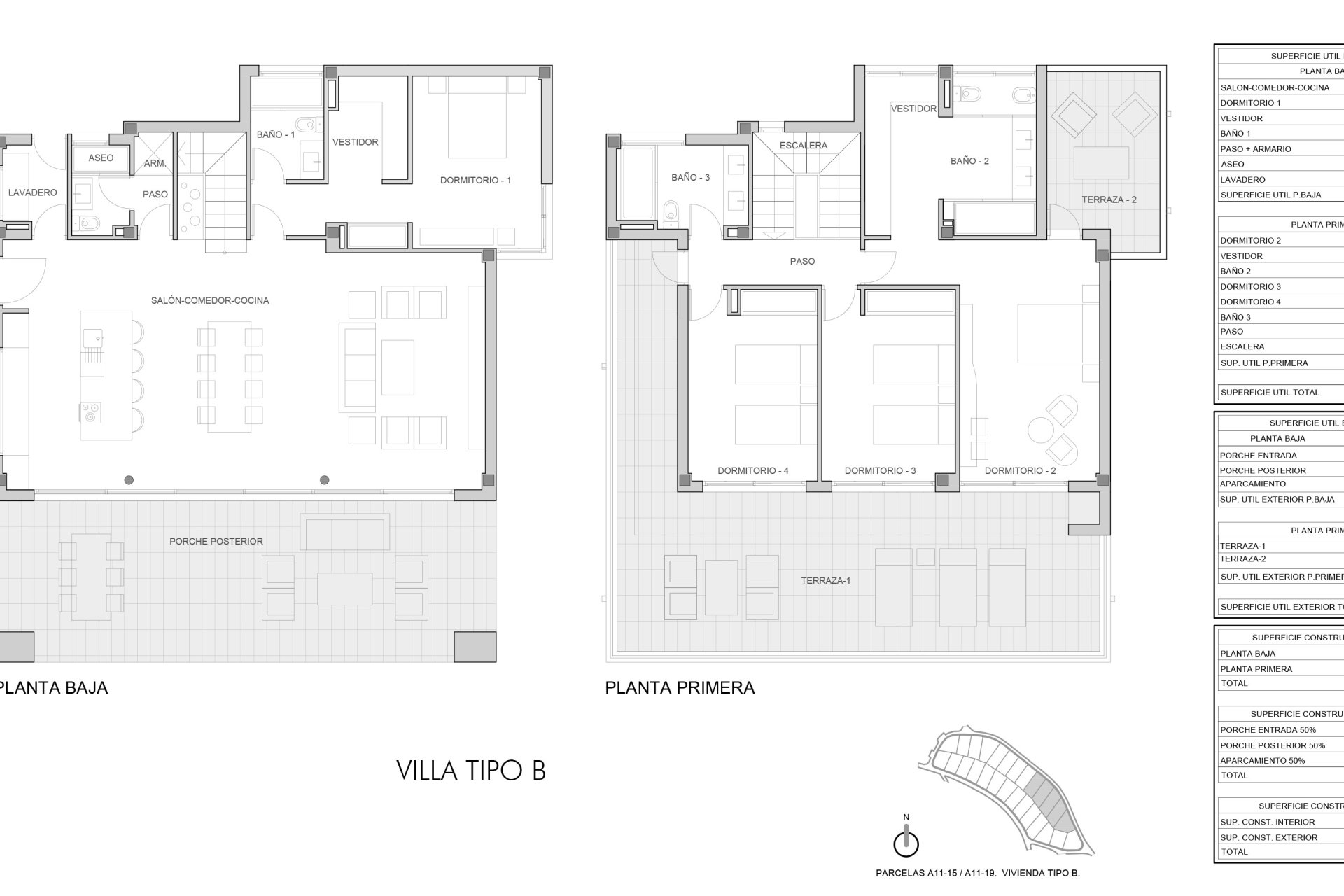 Wnętrze tych willi w Manilvie zaprojektowano z myślą o luksusie i funkcjonalności. Każda willa oferuje cztery sypialnie i cztery łazienki, zapewniając przestronne i komfortowe miejsce dla całej rodziny. Podłogi z gresu porcelanowego dodają elegancji i są łatwe w utrzymaniu. Nowoczesna technologia obecna jest w każdym zakątku, z systemami automatyki domowej ułatwiającymi kontrolę nad domem oraz wideodomofonem, który dodaje dodatkowy poziom bezpieczeństwa. Kuchnie wyposażone są w wysokiej jakości sprzęt AGD, a wbudowane szafy w sypialniach oferują efektywne i dyskretne przechowywanie.