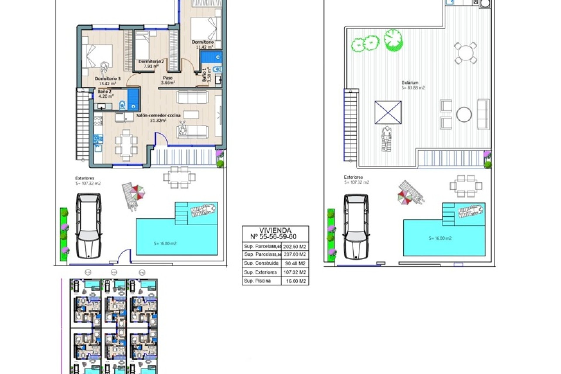 Położona w urokliwej miejscowości Torre-Pacheco, ta ekskluzywna kolekcja 10 niezależnych domów oferuje spokojne i dobrze skomunikowane otoczenie. Bliskość lotniska, zaledwie 23 km, ułatwia dostęp dla osób często podróżujących. Domy zostały zaprojektowane, aby zapewnić komfort i funkcjonalność, z opcjami 2 lub 3 sypialni i 2 lub 3 łazienek, dostosowanymi do potrzeb różnych rodzin. Typ niezależny gwarantuje prywatność i relaksujący styl życia w dzielnicy mieszkaniowej.
