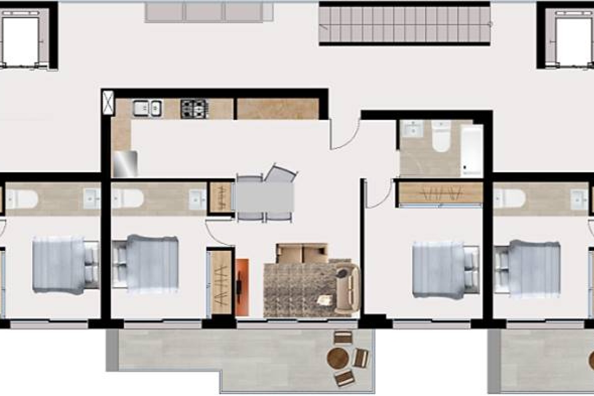 Wnętrza apartamentów i penthouse'ów w La Cala skupiają się na komforcie i nowoczesnym stylu. Z rozkładem obejmującym dwie sypialnie i dwie łazienki, każda przestrzeń jest zoptymalizowana, aby zapewnić funkcjonalność i wygodę. Kuchnie są wyposażone w nowoczesne urządzenia, ułatwiając codzienne życie mieszkańców. Klimatyzacja zapewnia przyjemne warunki przez cały rok, a wbudowane szafy oferują praktyczne i uporządkowane przechowywanie. Użycie gresu porcelanowego na podłogach dodaje odrobinę wyrafinowania i jest łatwe w utrzymaniu, zapewniając, że każdy dom jest zarówno estetycznie przyjemny, jak i praktyczny.