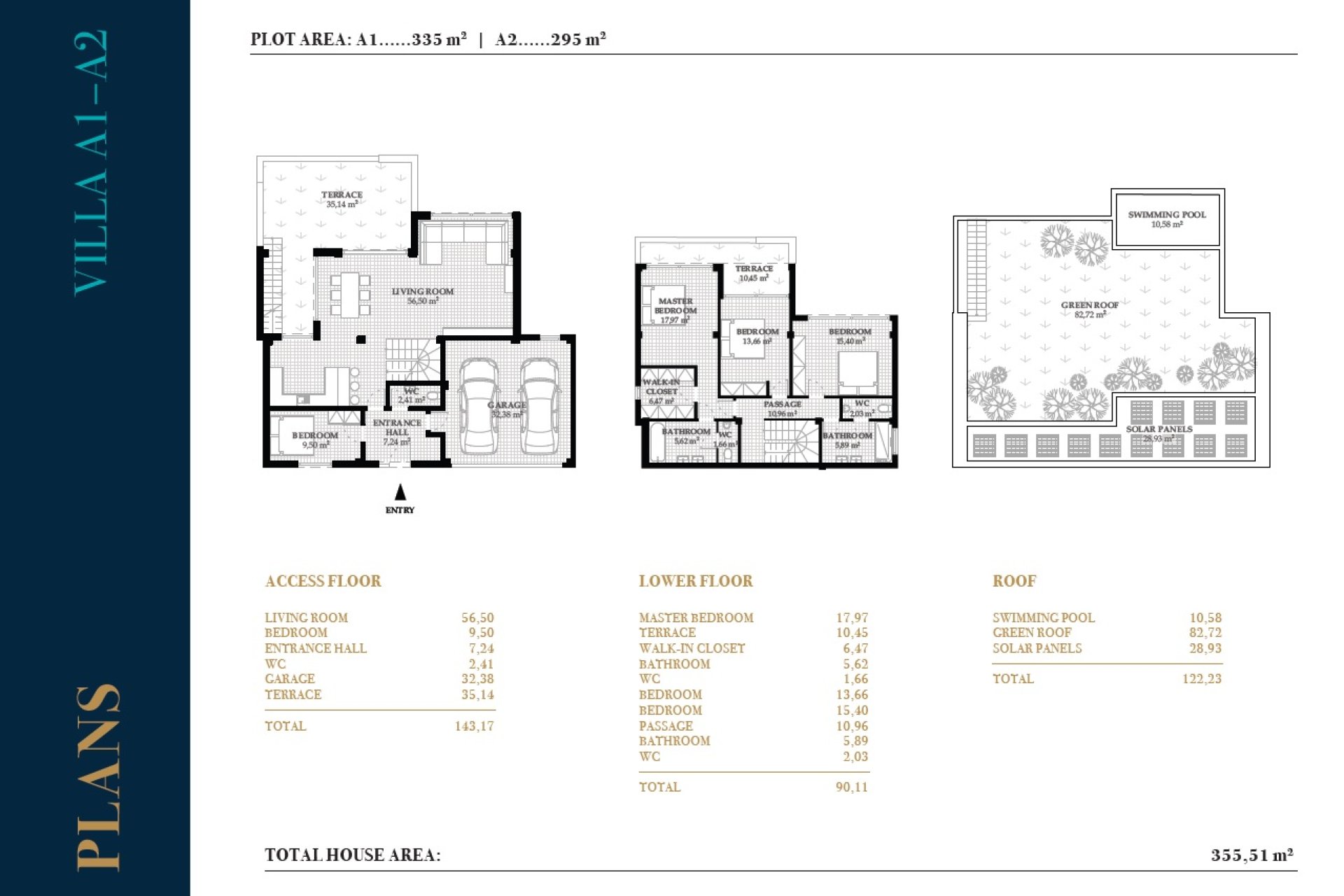 Wnętrze domów zaprojektowano z naciskiem na luksus i komfort. Marmurowe podłogi dodają każdemu pomieszczeniu odrobinę wyrafinowania i elegancji. Nieruchomości posiadają 4 sypialnie i 3 łazienki, oferując przestronną i funkcjonalną przestrzeń dla całej rodziny. Wbudowane szafy zapewniają efektywne przechowywanie, a elektryczne rolety dodają wygody i bezpieczeństwa. Klimatyzacja zapewnia przyjemne środowisko przez cały rok. Dodatkowo, domy są wyposażone w wysokiej jakości sprzęt AGD, co gwarantuje, że każdy detal jest przemyślany dla komfortu mieszkańców. Układ obejmuje prywatny garaż, co dodaje dodatkowy poziom wygody.
