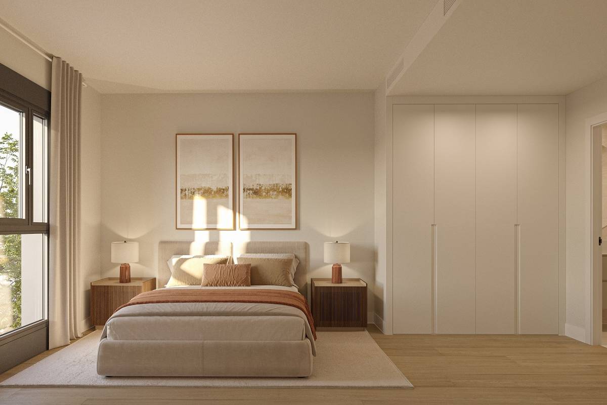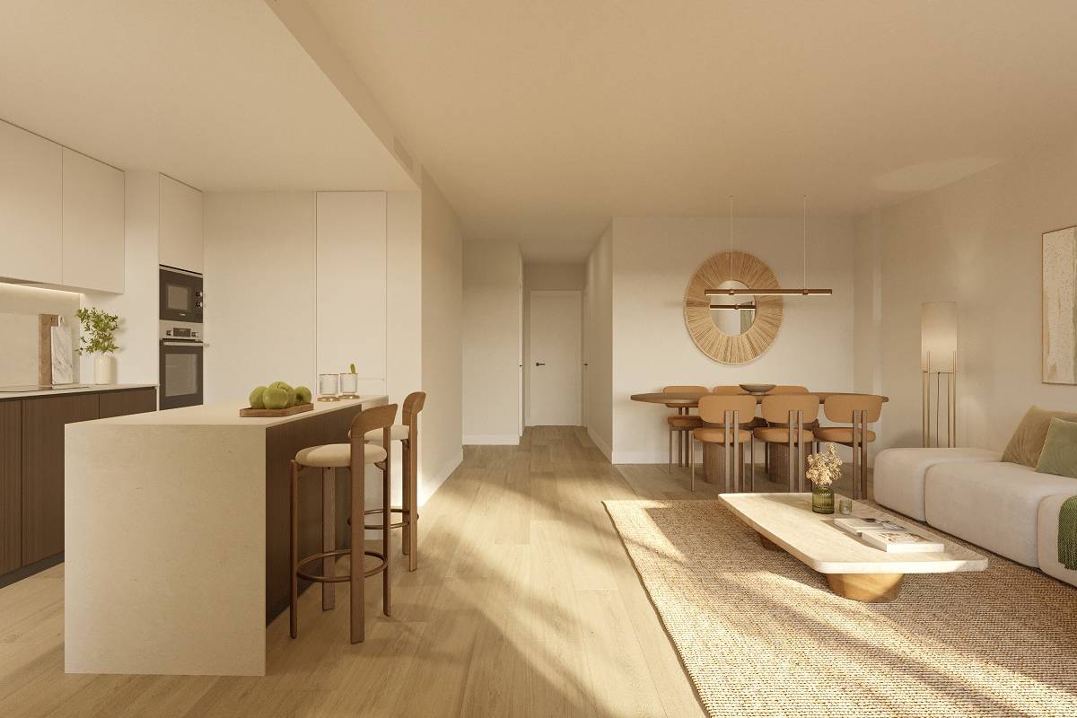 The interior design of the homes in Las Lagunas de Mijas focuses on comfort and functionality. The properties are available in configurations of 1, 2, or 3 bedrooms, with 1 or 2 bathrooms, adapting to different lifestyles. The interiors are equipped with built-in wardrobes, optimizing storage space and maintaining a tidy environment. The inclusion of a video intercom adds a level of security and convenience, allowing control over visitor access. The homes are designed to make the most of natural light, creating bright and welcoming spaces. The layout includes a garage, ensuring a secure space for vehicle parking. Every detail has been carefully considered to offer a home that combines style and practicality.