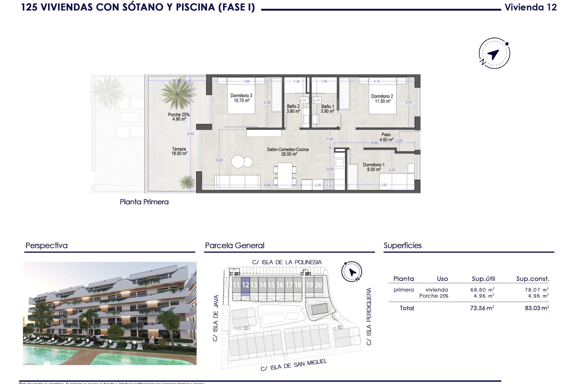 Located in the charming town of Santiago de la Ribera, this residential complex offers a selection of 48 homes including apartments, ground floors, and penthouses. Designed for those seeking a home with sea views, each property is situated just one kilometer from the coast, allowing for the enjoyment of the sea breeze and the relaxing sound of the waves. Proximity to the airport, just 40 kilometers away, facilitates access for frequent travelers, making this location a strategic point for both permanent residents and occasional visitors.