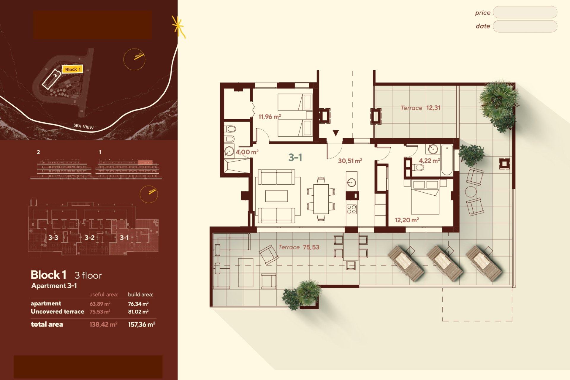 The homes in this residential complex stand out for their modern and functional design. The interiors are equipped with porcelain tile floors, adding a touch of elegance and durability. All properties come with high-quality appliances and a home automation system that allows efficient control of various aspects of the home. Built-in wardrobes offer optimal storage space, while underfloor heating ensures maximum comfort during the colder months. The layout of the homes, with 2 or 3 bedrooms and 2 bathrooms, is designed to offer a cozy and practical space for the whole family.