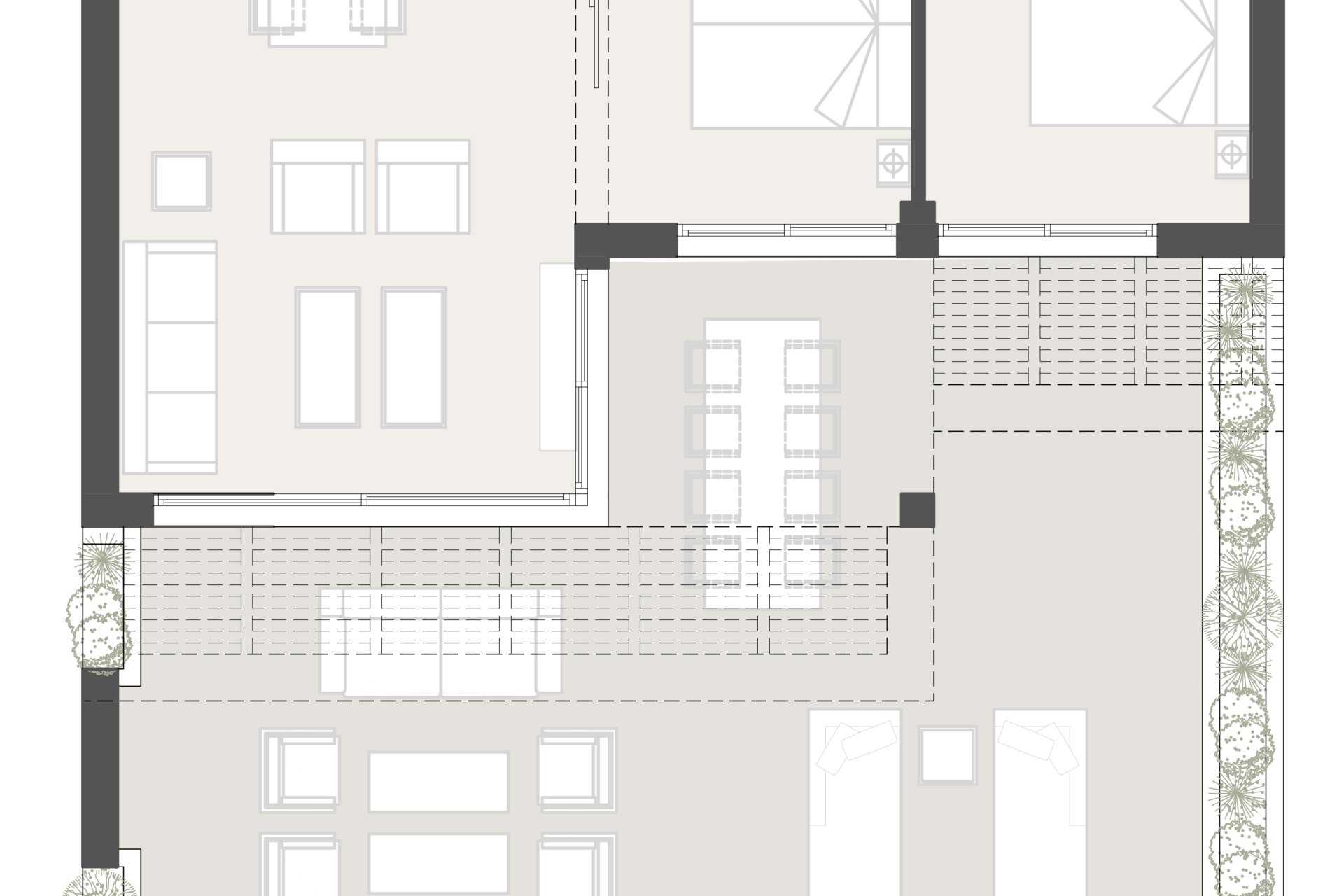 The common areas of this residential complex are designed to complement the lifestyle of its residents. The communal gardens offer a green space to relax and enjoy nature. The communal gym is equipped for those who wish to maintain an active lifestyle without leaving home. The communal pool is perfect for socializing and enjoying the good weather, while the communal solarium offers additional space to relax and enjoy the sun.