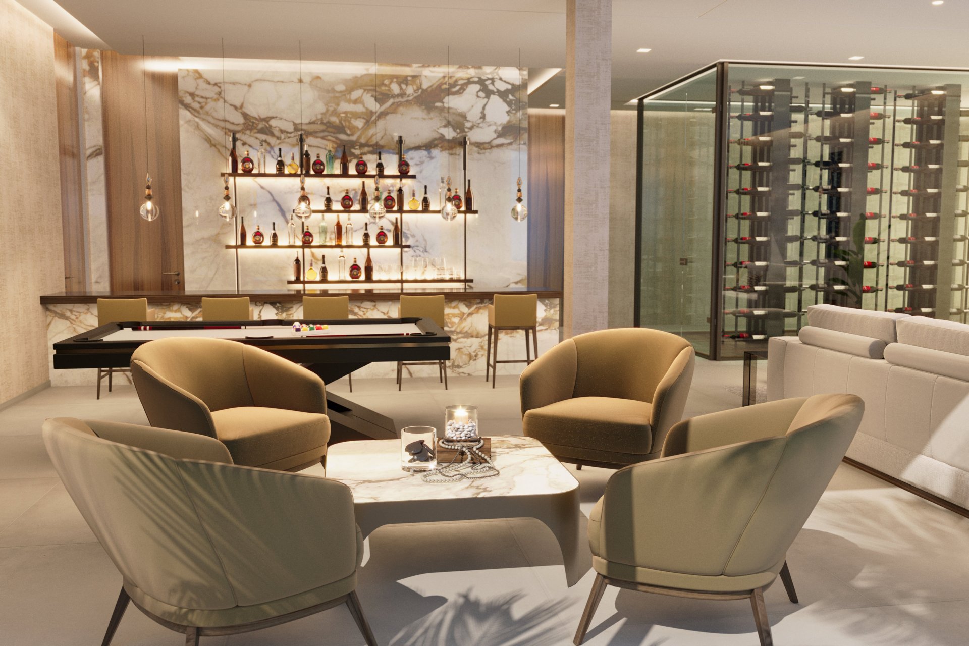 The interior of the villas is designed with a focus on luxury and functionality. With six bedrooms and seven bathrooms, each space is carefully distributed to offer comfort and privacy. The villas are fully furnished and equipped with modern appliances, ensuring every household need is met. The porcelain tile flooring adds a touch of elegance and durability. Additionally, they feature air conditioning to maintain a pleasant environment year-round. Built-in wardrobes provide ample storage space, while the video intercom ensures security and convenience.