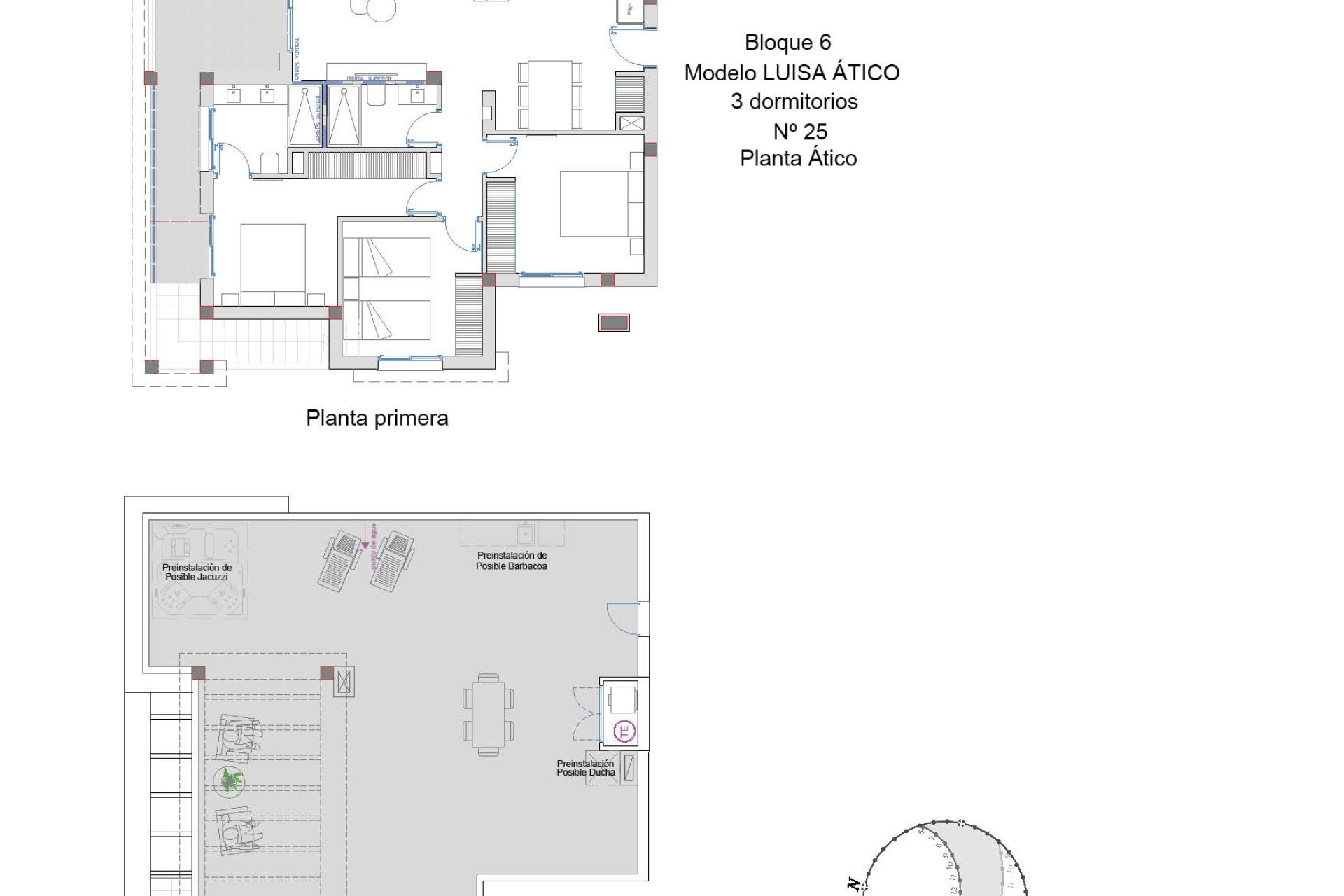 The exteriors of these bungalows are designed to maximize enjoyment of the Mediterranean climate. Each property features a private garden, perfect for relaxing or enjoying outdoor activities. The terraces offer additional space for entertainment or simply to enjoy the views. Additionally, the presence of a solarium provides an ideal place to sunbathe in total privacy. The inclusion of a pergola adds a touch of elegance and functionality, allowing enjoyment of the outdoor space at any time of day.