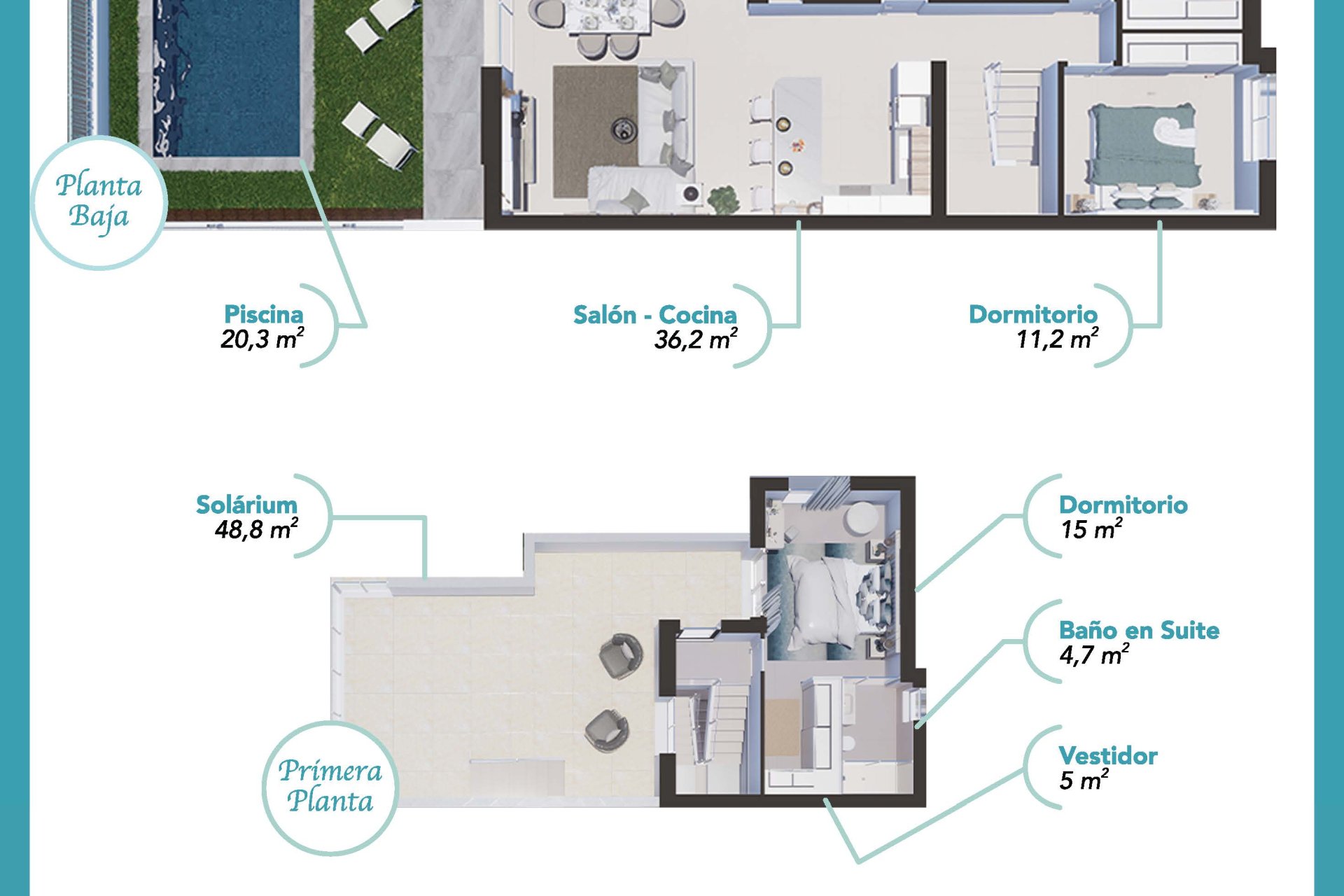 Located in the charming town of Los Alcázares, this exclusive collection of 18 townhouses offers an ideal setting for those seeking a home in a quiet and well-connected area. Los Alcázares is known for its proximity to the sea, just 2.6 km away, allowing you to enjoy the beaches of the Mar Menor in minutes. Additionally, the airport is only 11.3 km away, facilitating international travel. This strategic location combines the serenity of a residential environment with the convenience of nearby services and transport connections. The townhouses are designed to offer comfort and functionality, with modern features that cater to the needs of contemporary living.