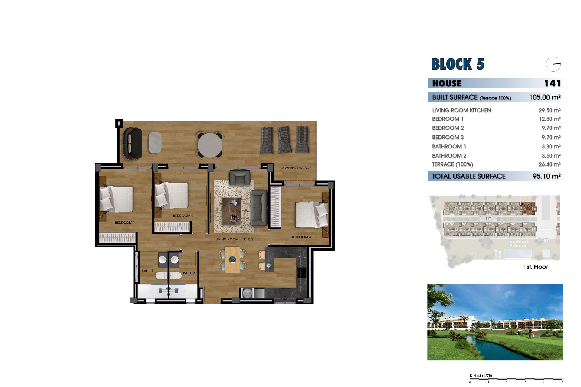 The exteriors of these homes are designed to offer an unparalleled outdoor lifestyle. Each property features a terrace, ideal for enjoying the views and the Mediterranean climate. Additionally, some types include a private solarium, perfect for relaxing under the sun. Ground-floor homes have private gardens, providing a personal green space to enjoy with family or friends. For those seeking an extra touch of luxury, some properties feature a private pool, offering a personal oasis to cool off during the warm summer days.